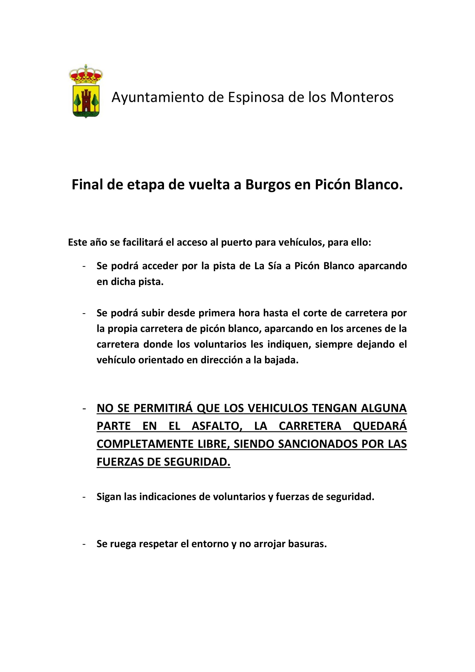 PASO DE LA VUELTA A BURGOS Y FIN DE ETAPA EN PICON BLANCO