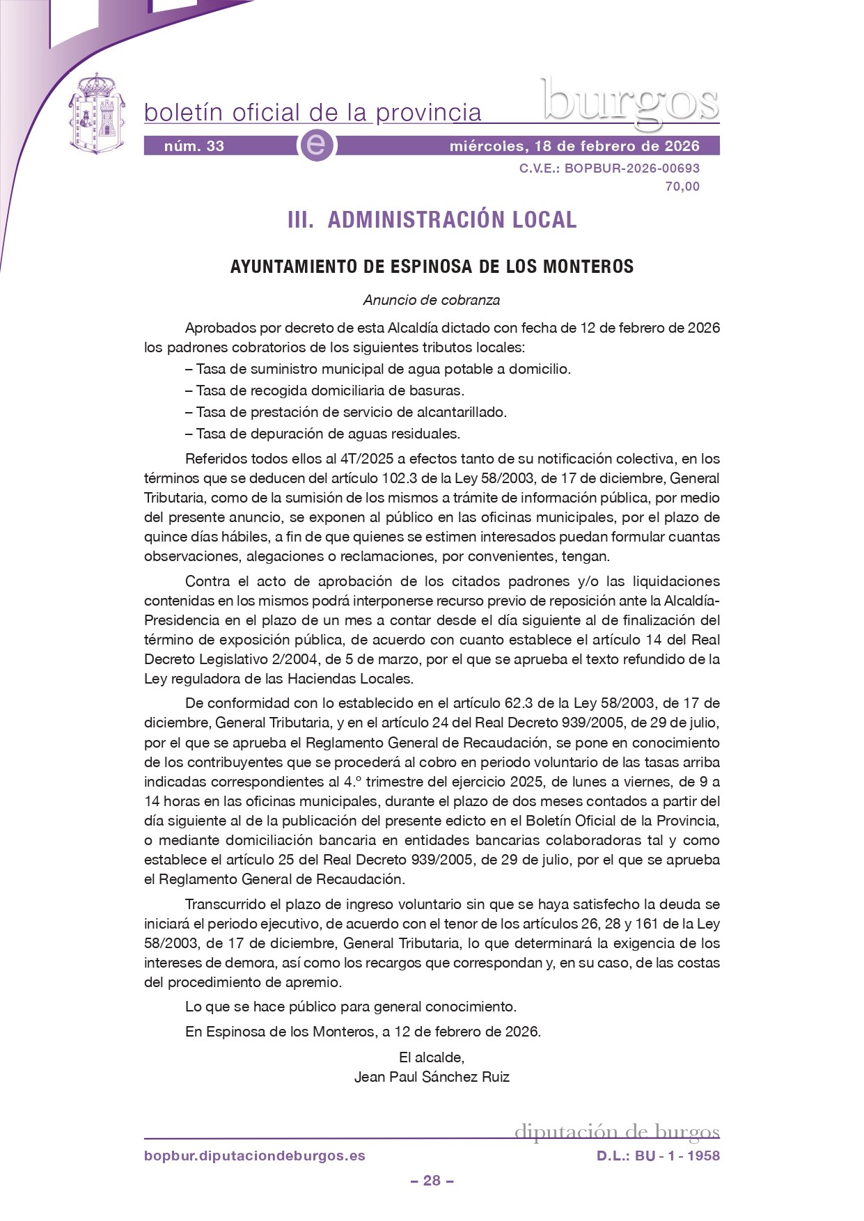 – Tasa de recogida domiciliaria de basuras.