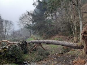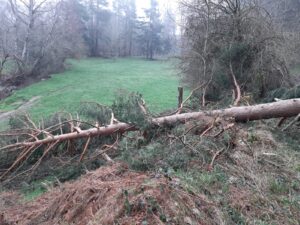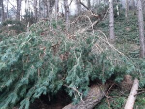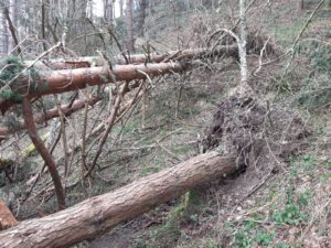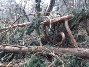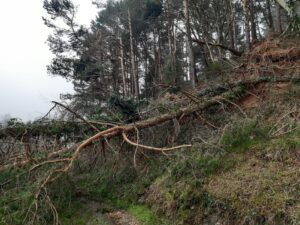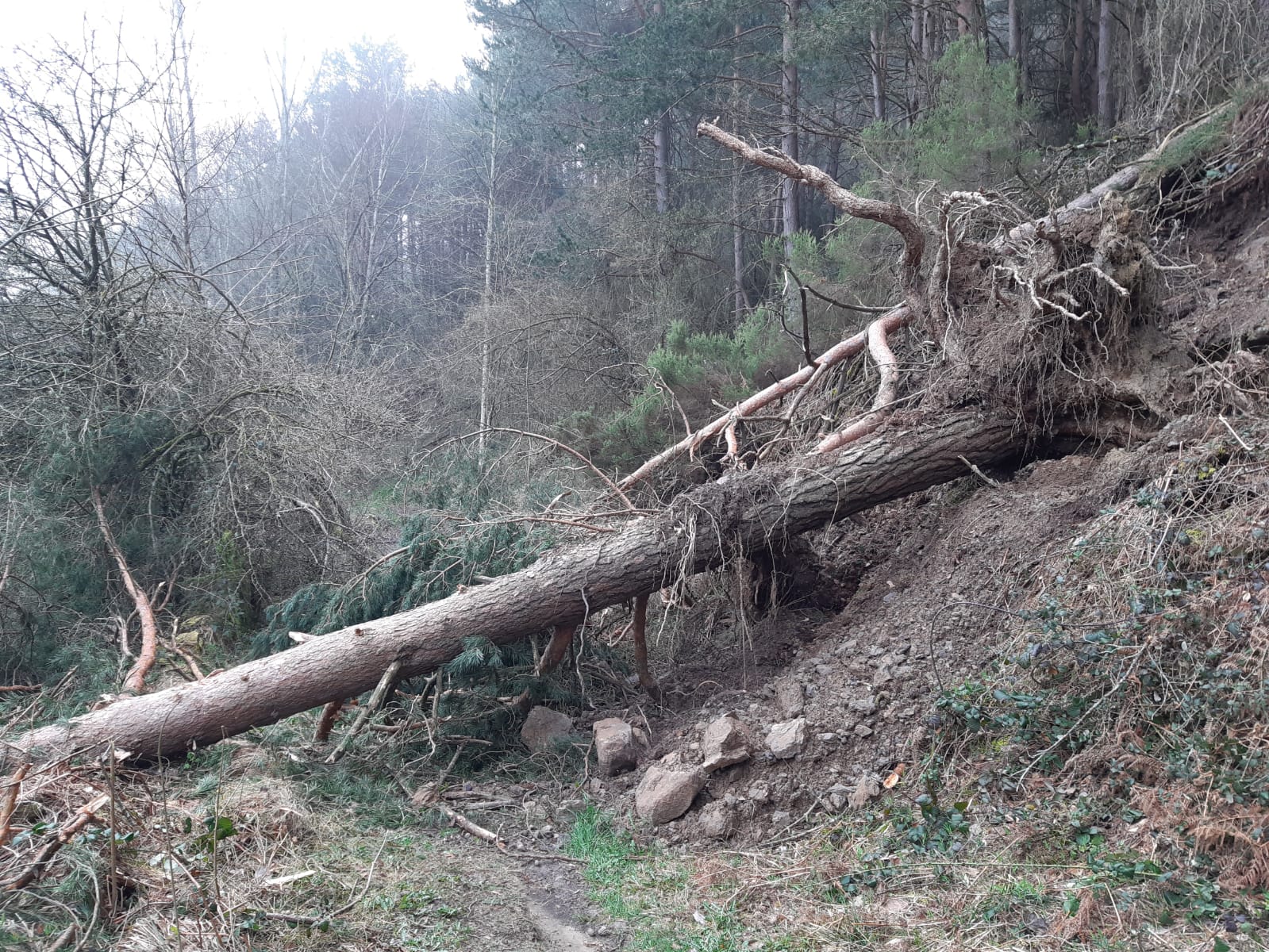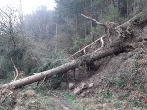 La senda del Estraperlo ha sido una de las más afectadas por los temporales sufridos en el pasado invierno. Su recorrido estaba obstruido en numerosos puntos, principalmente por la caída de pinos de grandes dimensiones.